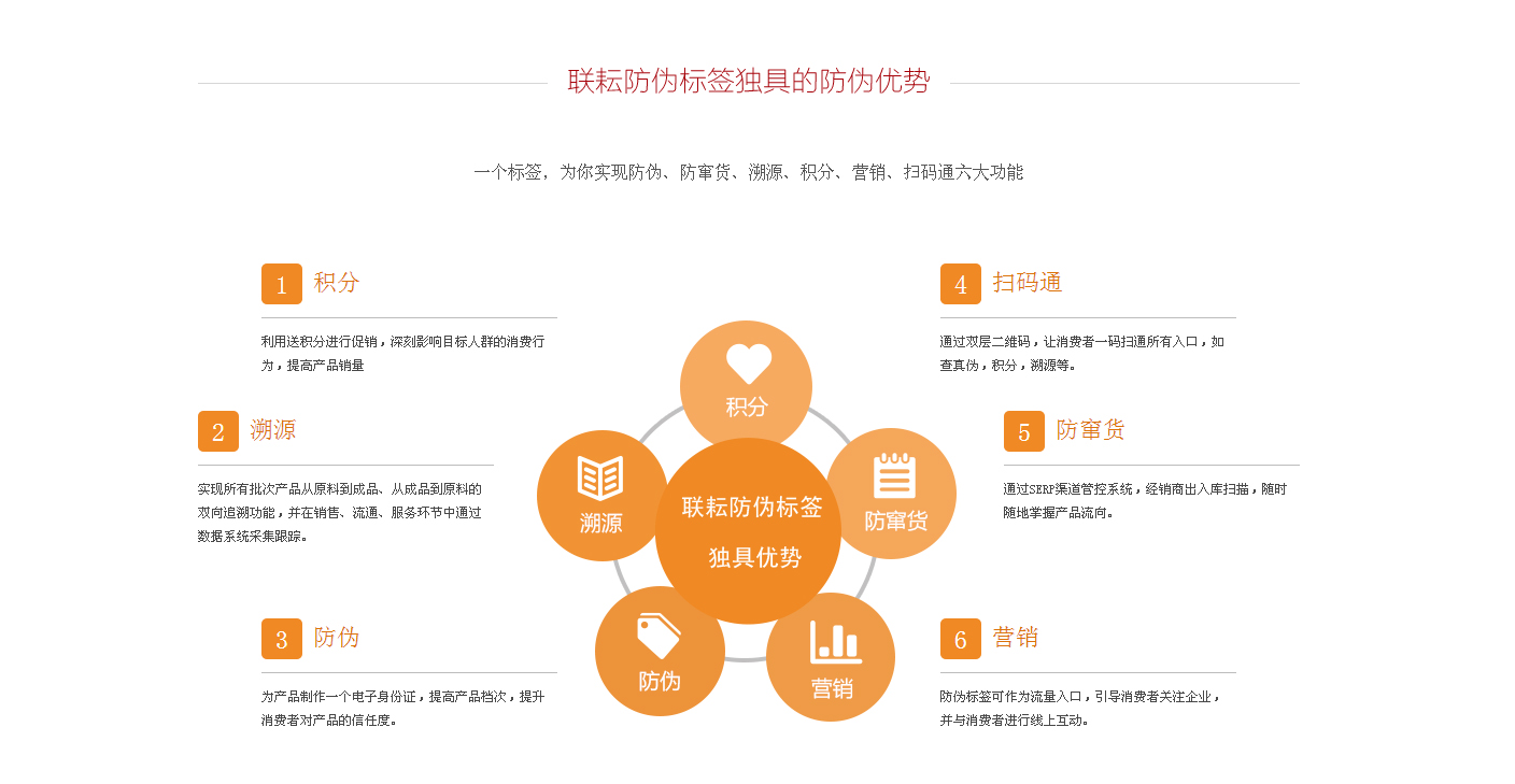 食品品日用品行業(yè)防偽標(biāo)簽食品安全是關(guān)系著全人類(lèi)的身體健康和生命安全的重大問(wèn)題。企業(yè)急需一套管理產(chǎn)品市場(chǎng)流通的有效機(jī)制和防偽系統(tǒng)。、、、